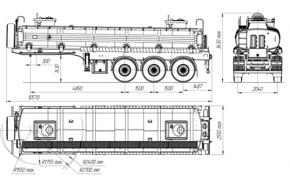 40 000 литров, прямое сечение, шины 425/85R21/6+1 или 385/65R22.5/6+1, рессорная или пневматическая подвеска