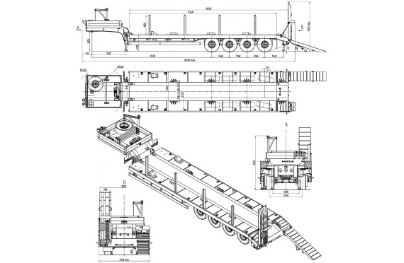 50000 кг, шины 385/65R22,5 или 445/65R22,5/ 6+1, присавные алюминиевые трапы, платформа 12200 мм, ССУ 1450 мм, пневматическая подвеска, раздвижные коники 1500 мм, съемные борта или без них, в ГАБАРИТЕ по ДЛИНЕ АВТОПОЕЗДА с КАМАЗ 6x6