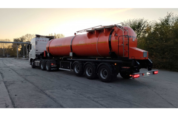 Материал: химстойкое стекловолокно, емкость: 20 куб.м., сечение: эллипсное, конструкция: однослойная или трехслойная (волокно, утеплитель, волокно), крепление: при помощи стяжных лент, перевозимые жидкости: кислоты/едкие вещества/нефть/техвода/щелочные и солевые растворы, автошины 425/85R21