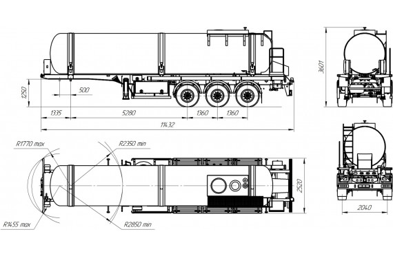Материал: химстойкое стекловолокно, емкость: 16 куб.м., сечение: эллипсное или круглое, конструкция: однослойная или трехслойная (стекловолокно + утеплитель + стекловолокно), крепление: при помощи стяжных лент, перевозимые жидкости: кислоты/едкие вещества/нефть/техвода/щелочные и солевые растворов